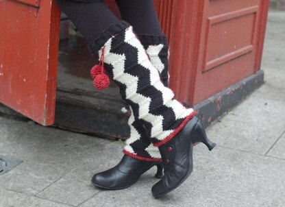 For those unaware, a “zebra crossing" is simply a crosswalk, often accompanied by zig-zag lines on the side of the road. Keep your ankles cozy as you prance across them with some coordinating legwarmers and cheery poms! The contrasting “back seam" calls to mind the sewn ladies' stockings that were popular in the mid-twentieth century, and the drawstring helps keep them up around your calves (or you can scrunch them!) As written, approximately 11"/28cm around and 14"/35.5cm tall. You can widen, narrow, or add/subtract stripes to accommodate different leg widths.