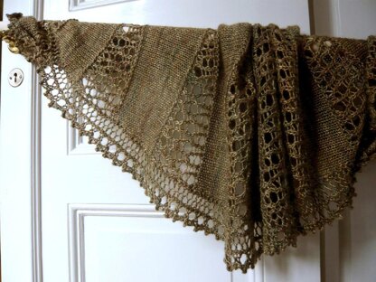 - This is knit sideways like most of my sideways shawl -- namely, knit until half your yarn is used up, then start decreases.