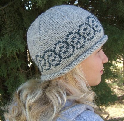 Zephyrus~Greek god of the west wind. This cozy hat is perfect for the cold and wind of winter. With just a touch of colorwork to add some interest, Zephyrus is sure to be a favorite. There are two options for the edging: a rolled edge that gives a feminine feel to the hat, and a flat unisex edge. Also included are four options for the colorwork design: two geometric designs, and two scrolling designs. Enjoy!