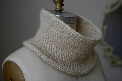 I used leftward traveling stitches, and then rightward traveling stitches. And I changed the direction at shorter intervals towards the end (bottom) of the cowl before changing to stockinette.