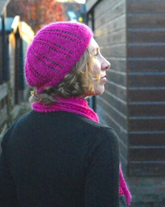 This hat is knit in the round. Stitches used include knit, purl, yo, k2tog and the double decrease sl1-k2tog-psso. The pattern is suitable for the intermediate knitter.