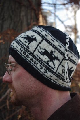 Knit from the bottom up, the hat decreases to a flat top after the colorwork panel is complete and is topped off with an optional braided tassel.