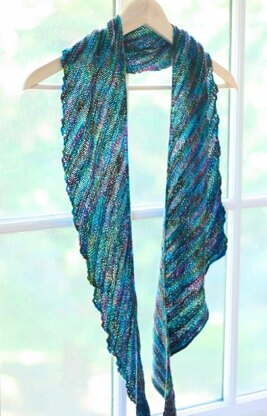 A long, wrapable shawlette, perfect for a single skein of variegated sock yarn. Alternating garter and stockinette with simple bindoffs at the edge creates a softly scalloped, elegant accessory and a perfect stash busting project, especially for that very loud and fun variegated skein you have in your stash awaiting a home. And by the way - stitch counts don't matter!