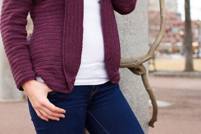 Zulia is a flexible pattern that can be used to make either a relaxed vest with lots of drape, or a cozy yet flattering cardigan. Worked from the bottom up in pieces, this cardigan includes set in sleeves. The collar is crocheted separately in one piece utilizing increases and crab stitch; it is then seamed onto the sweater using a simple whipstitch.