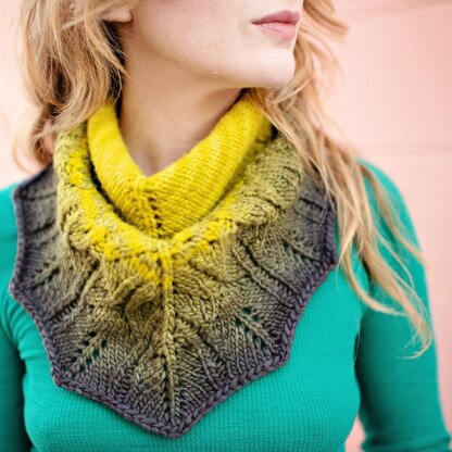 All the style of a shawlette without the fuss of trying to keep it around your neck! This easy to wear cowl is designed to mimic the look of a shawl, casually worn as a scarf. The pattern starts out worked flat like a top-down shawl, and is then joined and worked in the round to the bottom edge. I call these hybrid patterns, “cowlettes.”