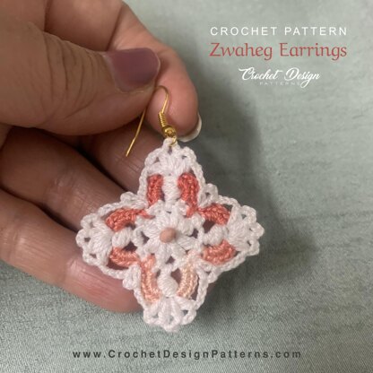 Made with lightweight thread (size 8 to 10) in two complementary colors, these earrings offer a subtle yet eye-catching accessory for any occasion. The pattern, meticulously crafted, features detailed written instructions accompanied by helpful notes and special stitches, including the intricate puff stitch and the beautiful bullion block stitch plus the basic stitches like chain, single crochet, half double crochet, double crochet and slip stitch. When you purchase our exclusive 12 earrings pattern e-book, you'll receive the pattern for these charming Zwaheg earrings absolutely free. Link to the e-book with the free zwaheg earrings: www dot crochetdesignpatterns dot com