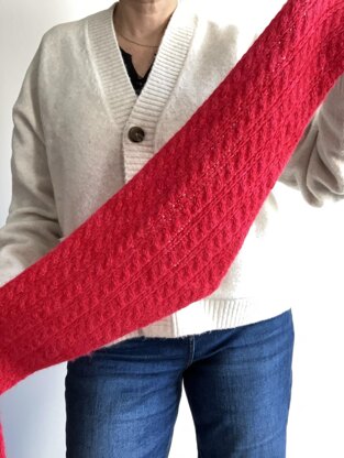 Zyra is a scarf knitted with cables and slipped stitches, giving it beautiful texture and character.