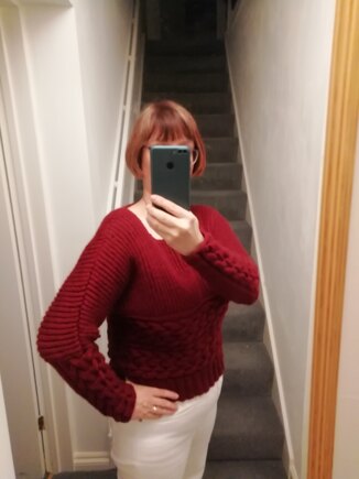 Super stylish, I loved this pattern at first sight. Not for anyone in a hurry. The Fisherman's Rib grows slowly, but the finished result is worth it.