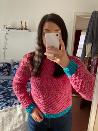 Notes: I used smaller needles as the wool wasn’t quite as chunky as the pattern calls for