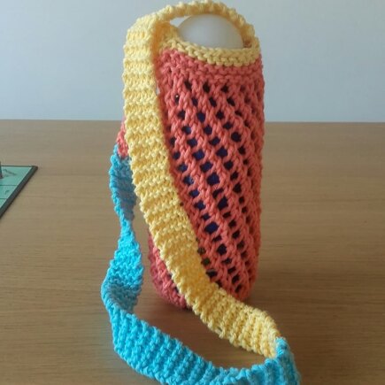 Encouragement to take own water bottle with her and ditch the plastic. Used leftover cotton yarn from baby blanket project.