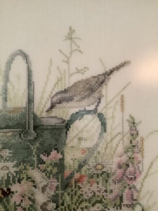 Probably my favourite cross stitch out of all I have done. It was worked with one strand of DMC on linen, which gives it a finer finish. I had it framed with non reflective glass which probably dulls it a bit.