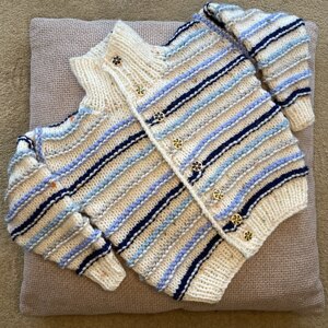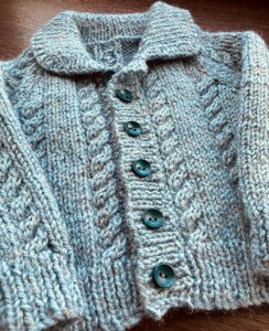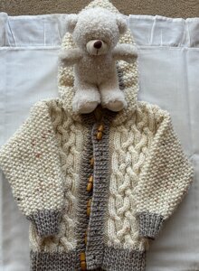 I do, however, love to see my grandchildren in hand knitted garments, and feel proud of what I have achieved. I also love a cable design on my knitting. I love to knit for my two grandsons Alex (4) and Theo (8).