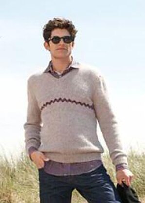 A basic V neck slipover with a zig zag pattern worked in colour and in texture.