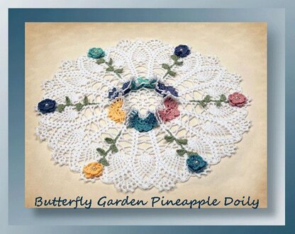 Our versatile crochet butterfly doily boasts six cute 3-dimensional butterflies surrounded by petite pineapples and embellished with 3-dimensional flowers set atop green stems! It's the perfect seasonal doily for your home. It's even better given as a gift. Versatile in that you can create just the butterfly candle ring, the doily center worked alone creates a coaster or jar topper. Or create the candle doily and omit the doily center, or...