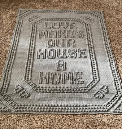 Blanket reads LOVE MAKES OUR HOUSE A HOME