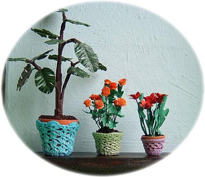 Gauge – This is not really important for this project as miniature flowerpots can be any size and the crochet will stretch when damp.