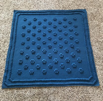 This baby blanket is 35 x 35. It was made with Caron Simply Soft ( 1700 yards ) & a G hook. Yarn choice, hook size and tension may alter finished size.
