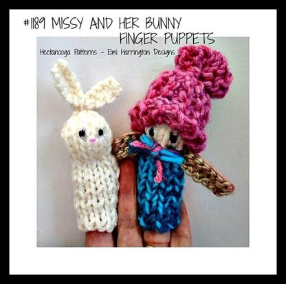 KNITTING PATTERN, FINGER PUPPETS. Missy and her Bunny. Quick and easy pattern, great for scraps! . YOU WILL NEED: Worsted weight yarn 4 mm knitting needles, worked flat sewing needle plus black and pink thread for eyes and nose. stuffing (fiberfill or cotton balls)