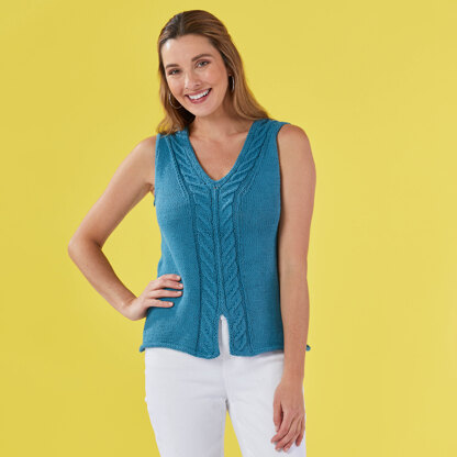 Valley Yarns Kobuk Valley is a stylish A-line women’s three-season sleeveless jumper knit in Leverett. The cables travel from the bottom up and split at the v-neckline into both sides. The jumper is worked in two main pieces, with the left and right hems for both the front and back first worked separately and then joined at the top of the hems to combine the cables into one. Kobuk Valley is knit flat in pieces and then seamed. The armhole and neckline edging stitches are picked up along the edge and worked in the round. Valley Yarns Leverett is a stay-cool blend of Pima cotton and linen that will work up beautifully into everything from tees to dishcloths! The cable patterns are charted and written out.