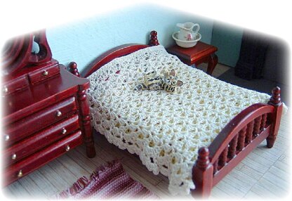 Finished sizes - approx: Blanket - 3-inches/7.5 cm long by 3½-inches/8.75 cm wide. Bedcover - 4-inches/10 cm long by 3½-inches/8.75 cm wide.