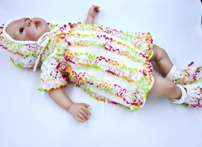 Instructions for you to knit this very pretty reborn doll dress set using knitting in lace.