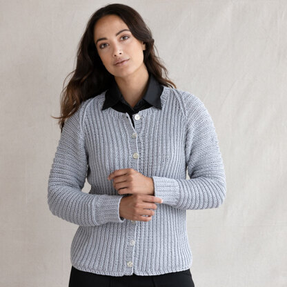 Valley Yarns Alyssum is a lovely women’s ribbed cardigan knit in Toby. This jumper is perfect for the office or running weekend errands on those cool spring and summer days. You’ll want more than one colourway of Alyssum! The back and sleeves are knit in one piece from the bottom up, with raglan shaping. The fronts are knit in two pieces from the bottom up and then seamed. Toby by Valley Yarns is a smooth and sophisticated yarn. This yarn has a beautiful blend of Mako cotton, Mulberry silk, and cashmere, making it lovely to touch.