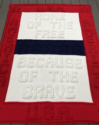 Blanket reads HOME OF THE FREE BECAUSE OF THE BRAVE