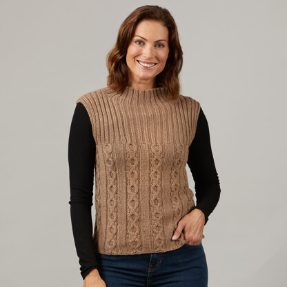 Valley Yarns Autumn Glory is a stylish vest with a cabled lower body and ribbed yoke worked in soft Ashfield yarn. A smooth blend of Merino wool and bamboo, Ashfield has a beautiful sheen, great drape, and a comfortable, luxurious feel. Autumn Glory is knit in the round from hem to underarms, where the front and back are completed separately and seamed at the shoulders. The sleek mock turtleneck is picked up along the neckline and worked in the round for a tidy finishing touch. Create a versatile vest that can dress up your fall and winter wardrobe with comfy, cosy Autumn Glory! Cable patterns are both charted and written out.