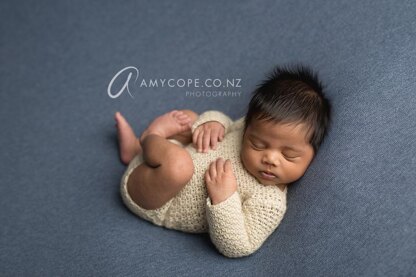 This is a listing for a crochet PDF pattern for a gorgeous long sleeved romper with a matching bonnet. The romper is crochet in a few pieces and then stitched together at the end. There are many photos in the pattern to guide you and help with sizing. The back of the romper has a v opening without a button fastening so that it is easier to slip on and off a baby. You may find that the v back will gape open when it's on the baby, but this is the way the romper is designed. It is meant to be worn so that the front is showing.