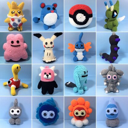Pokémon are everywhere and loved by everyone. There are so many to choose from its hard to have a favourite. In this Collection you will received the written crochet pattern for 16 Pokémon Dolls to make yourself. Imagine all the gifts you will be able to give.