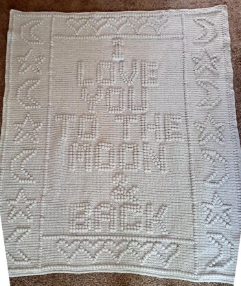 Blanket reads: I LOVE YOU TO THE MOON & BACK