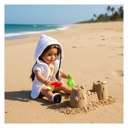 Crochet doll clothes pattern for the 18” inch doll. She will be in style this summer at the beach, or even during the winter months. This doll bikini with the hooded vest is sure to be a hit with any doll lover. The pattern is all written in US terminology. Instructions are for the sandals, hooded vest, bikini top and bikini bottoms. They make for great gifts to any little one. Add your own touch to this outfit, with flowers, ribbons, etc, give it your personal touch. It can be made in any color. Does not take up much yarn at all, so it’s great for getting rid of your scrap yarn, or small balls. It is made with worsted weight yarn.