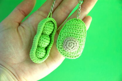 The pattern bundle includes two detailed step-by-step crochet pattern with photos. Includes two patterns, one for the avocado and one for the peas. Almost without sewing! Perfect for beginners Difficulty level: easy The PDF file is print and tablet-optimized and includes my free support via Ravelry, email, Facebook or Instagram. The finished key chains are about 7 cm
