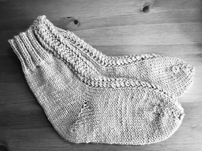 Easy 2 needle socks. The twist stitch pattern down the centre front hides the seam perfectly!