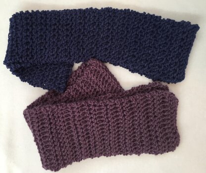 Patterns for 2 different scarves, yet similar. Both very easy, and both very quick to make! Use as a great accent piece around blouses, tops and coats! These work up so fast, you can make several for gifts! Uses a small 3 ounces of worsted weight yarn for each scarf which is about 50 inches long. Length can be as you determine, or have yarn left. Use knitting needles US # 13, and # 17 so work goes quickly!