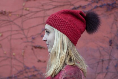 This simple pattern can cover a family of heads, any age and many styles. The 3 samples shown were knit with cashmere and a Yak merino blend. Both yarns are so soft, lightweight and warm. Any yarn that works up at 61⁄2 stitches to the inch will work well. By playing with the rib length, rolled edge, and finished length, your possibilities are endless. Add a pompom of wool or fur. After knitting quite a few hats and measuring them on family and friends, my final calculations for the most perfectly balanced sag is a total length of 11".