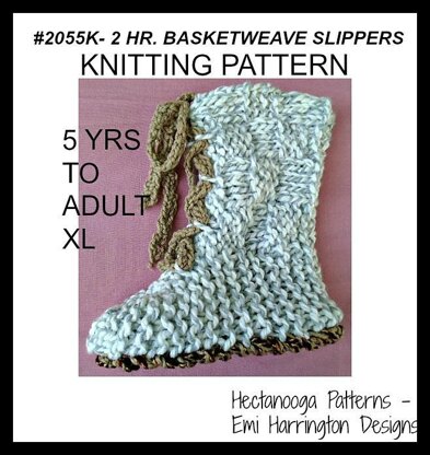 KNITTING PATTERN, BASKETWEAVE SLIPPERS, UNISEX STYLE, 2 hour project, Quick and easy, flat knit for beginners (and experienced) 8 mm straight knitting needles, Use Chunky yarn, or 2 strands of worsted weight, All sizes from 5 yrs to Adult XL (13- 14 inch foot) .