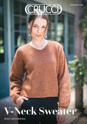 This pattern is for a women's loose V-Neck sweater, using CRUCCI Brackenvale 8ply wool. Intermediate skill level required. Comes in sizes S-XXL.