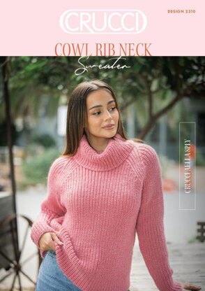 This pattern is for a women's cowl rib neck sweater, using CRUCCI Aella 8ply wool. Intermediate skill level required. Comes in sizes S-XL.