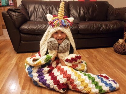 The hooded blanket is suitable for girls or boys alike and would look gorgeous folded away on your sofa. Designed to be a full-body blanket. Made with super chunky (super bulky / #6) yarn, this blanket is warm, soft and works up in no time.