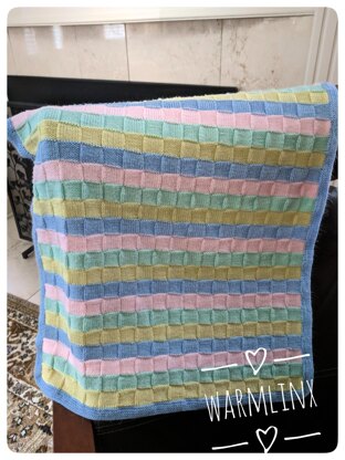 You could find the free version of the pattern on http://warmlinx.com/2017/10/19/4-color-block-baby-blanket-knitting-pattern-simple-blanket-pattern/