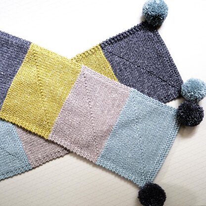 A simple textured colour block scarf. A relaxing knit with just enough interest. The perfect statement scarf. Inspired by architectural lines and building blocks.