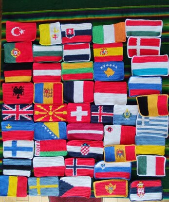 This is a flag crochet pattern bundle with written patterns and charts for 46 European flags.