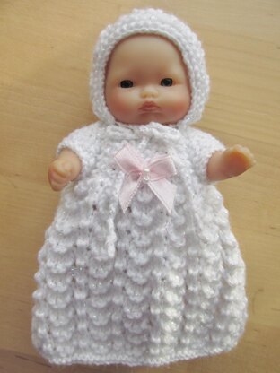 Instructions are for dress, bonnet, headband, shoes and panties. Easy pattern on the dress skirt.
