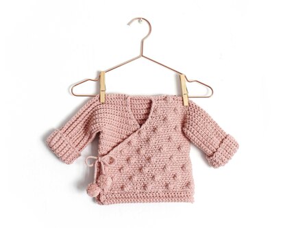 Crochet this beautiful and practical NEO Crossed Baby Jacket using nice Bobble stitches. The best garment for a baby and super easy to put on and take off. It is simply as laying the jacket open, putting your baby on top, closing it and, you are done!