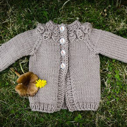 Cute little mushroom caps adorn the yoke of the simple, bottom-up raglan Cremini Baby Cardigan. Valley Yarns Superwash Bulky makes it a super-quick knit, making it great for a last-minute gift.