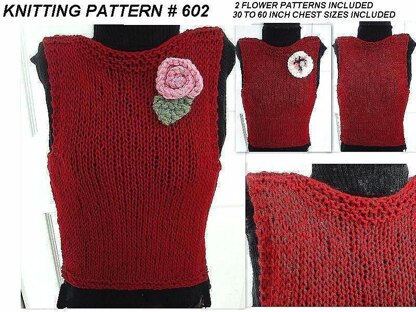 KNITTING PATTERN for a stylish Unisex Sweater Vest or Women's Tank Top -all sizes from 30 to 60 inch chest included, ( Small to XXXLarge), 2 flower patterns included, Pattern #602. This is a pdf digital instant download tutorial. You can make this as a man's vest, or a woman's tank top, or summer sleeveless shell! All sizes from small to large included. A very simple method, suitable for beginners! Links will also be included so you can learn how to cast on, knit, purl, cast off, and sew a seam in a knitted garment. If you would like a preview, see them here: GRANDMOTHER’S EASY CAST ON METHOD: http://www.youtube.com/watch?v=4Teo8JETmi4 Knit stitch demo: http://www.youtube.com/watch?v=PpJyef0ewFc Purl stitch demo: http://www.youtube.com/watch?v=L2dkEiTDxCw Cast off demo: http://www.youtube.com/watch?v=p_QLYZG1lcU Sew a seam in knitting: http://www.youtube.com/watch?v=S5UXKaYctAg