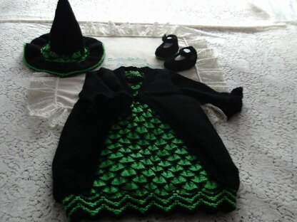 A stunning knitting pattern for a little Halloween outfit consisting of a long dress, long waistcoat, shoes and witches hat. There is also instructions for a headband, so that it doesn't just have to be for Halloween. I'm sure every little girl would look like a princess in this outfit if its made in different colours.