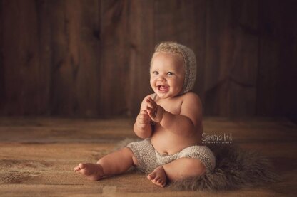 Description: This is a PDF knitting PATTERN for a cute shorties set for babies aged 6-9 months. This pattern has full written instructions on how to make the shorts and bonnet with lots photos to guide you along the way. This pattern does not include newborn size or any other larger sizes. This set is meant for use as a photography prop.