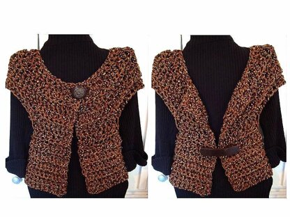 See the photos to see how you can make this in a chunky style with 2 strands of worsted weight, or with one strand for a more lacy, lightweight jacket!